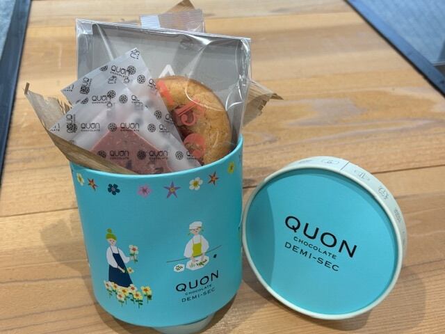 クッキーは、パティシエ柴田武氏とQUONチョコレートの夢のコラボレーションから生まれた「ABCDEFG~タケシとQUONのお菓子な関係~」という店舗の商品で、ちょっと温めてから召し上がると、やわらかさと美味しさが引き立ちます。